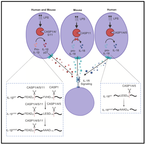 The tetrapeptide sequence of IL-1β regulates its recruitment and activation by inflammatory caspases